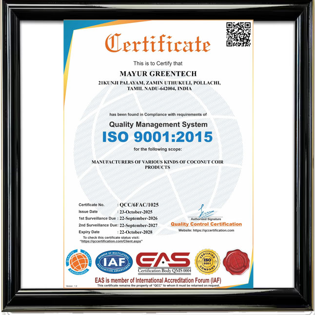 ayur Greentech, based in Pollachi, Tamil Nadu, manufactures white & brown coir fibre, coco peat blocks, and coir pith manure from coconut husk using advanced processing technology. We supply quality coir products to industries across India with a strong focus on sustainability.